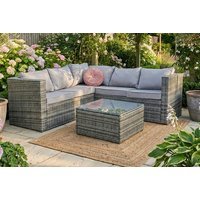 Plush Grey Cushions: Relax with supportive, 9cm-thick comfort. Seats 5 Comfortably: L-shaped corner design maximises garden lounging space. Weather-Resistant PE Rattan: Choose sleek black or grey for style and durability. Included Matching Coffee Table: Handy glass-topped table for refreshments and decor. Flat-Packed Simplicity: Easily assemble at home with clear instructions. Stays Looking New: Durable, low-maintenance, and perfect for outdoor living. Optional Rain Cover: Custom-fit protection—ideal for year-round use.