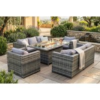 Vancouver 8-Seater Rattan Garden Sofa Set with Fire Pit & Optional Cover – Grey | Wowcher