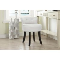 Easy assembly: Simple setup, easy care. Space-saving size: Fits under dressers or in any bedroom corner. Luxurious velvet upholstery: Soft-touch fabric for all-day comfort. Chic low backrest: Ergonomic support with elegant button detailing. Modern dressing chair: This gorgeous vanity-approved seat has a streamlined silhouette in grey-white for style and comfort. Durable construction: Robust rubberwood legs hold up to 120kg.