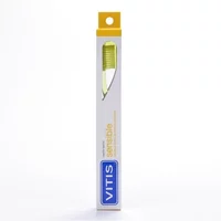 VITIS® sensible is a toothbrush with very soft filaments that is specially designed for people with tooth sensitivity and delicate gums, since it allows for daily brushing without causing pain. VITIS® sensible is a daily use toothbrush with very soft filaments arranged in a flat surface pattern allowing for gentle brushing without causing pain to patients with tooth sensitivity or gingivitis (gum disease). The neck of the VITIS® sensible toothbrush is flexible, and can be bent to the best position for your mouth, to improve brushing access. The handle is ergonomic and offers antislip grooves for easy use and a comfortable grip during brushing. Its protective cap keeps filaments grouped together in optimally hygienic conditions. Available in six colours: transparent, green, blue, red, yellow and purple.Shop Online Vitis Toothbrush Sensitive at best price. Product features: – Dental: Toothbrushes