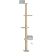 Easy Assembly: Quick setup with all hardware included. Space-Saving Design: Wall-mounted frame fits perfectly in small rooms. Multi-Level Climbing: Four staggered platforms for endless feline fun. Sisal-Wrapped Posts: Satisfies natural scratching instincts and protects your furniture. Sturdy Build: Securely mounts with included expansion screws for stable play. Perfect Height: Stands tall at 180cm to encourage climbing and exercise. Modern Look: Sleek grey finish blends with any decor. Interactive Toy: Dangling ball keeps cats engaged and active.