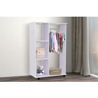 White Particle Board Mobile Open Wardrobe – Modern Slim Bedroom Storage with Hanging Rail & 3 Cubbies on Wheels | Wowcher
