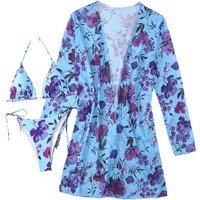 Women’s Black 3-Piece Floral Bikini Swimsuit with Kimono – Vibrant Summer Beachwear | Wowcher